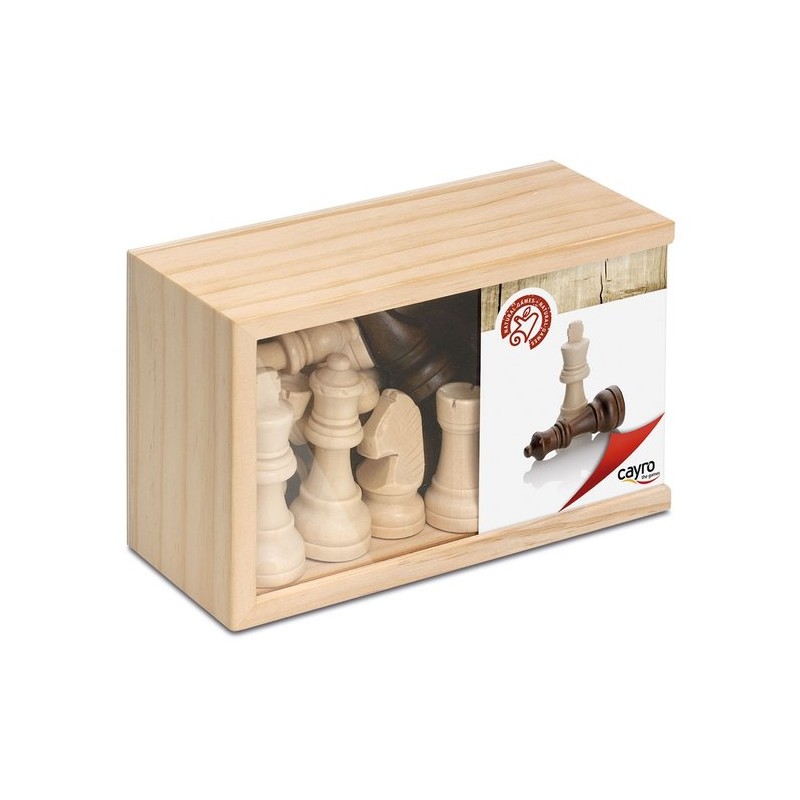 Juego de figuras de ajedrez de madera (altura del rey 8,89 cm) en una práctica caja transparente.