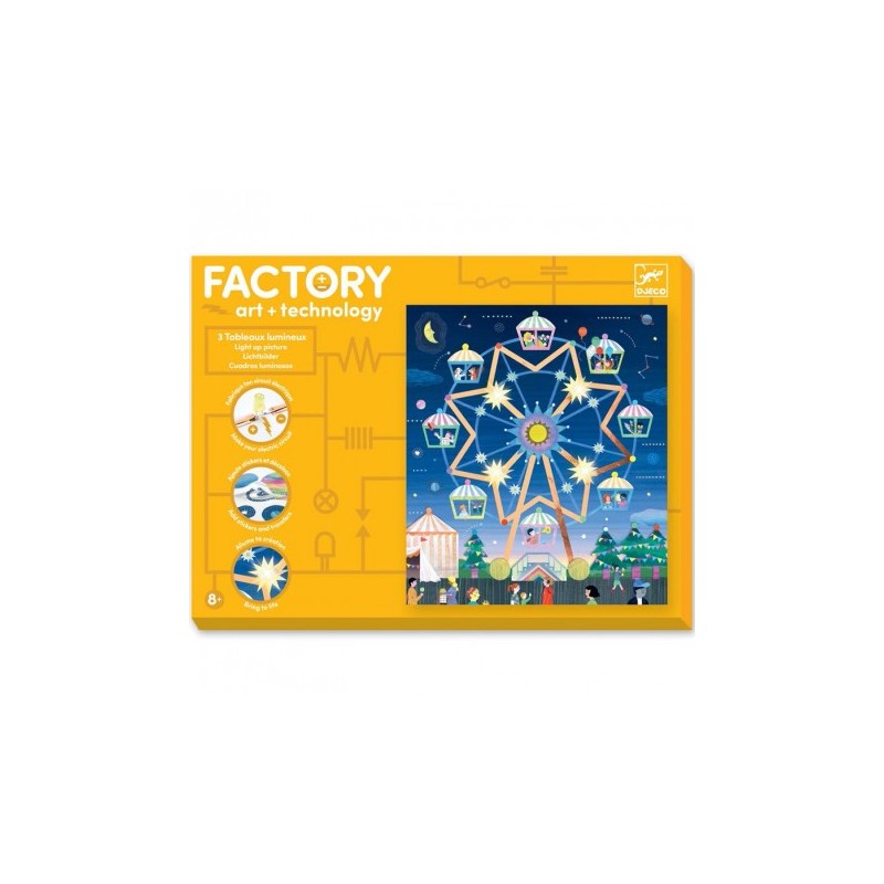 Descubre la caja de arriba Hay 3 mesas para iluminar la Colección Factory de Djeco, una caja creativa que combina bricolaje y experimentación para niños a partir de 8 años. Tenga cuidado de resaltar estos 3 monumentos.