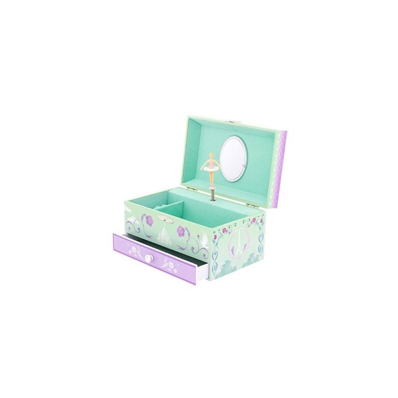 Al abrirse el joyero, una pequeña bailarina empieza a bailar al son de una delicada música. La llave del mecanismo de la caja de música está en la parte posterior.