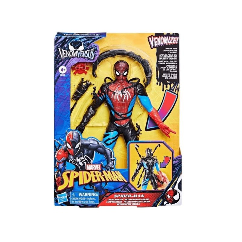 VENOMIZADO: Presiona el brazo de la figura de acción de Spider-Man Transformación líquida para activar una transformación de líquido negro simbionte y venomizar a Spidey INCLUYE ACCESORIOS DE VENOM: Este juguete Spider-Man viene con 6 accesorios inspirados en Venom para que los niños a partir de 4 años puedan imaginar el cambio simbionte de Spider-Man FIGURA MARVEL DE 27 CM: Esta divertida figura de Spider-Man de 27 cm para niños y niñas cuenta con cabeza y manos articuladas COMPATIBLE CON TITAN HERO SERIES: La figura Spider-Man Transformación líquida es compatible con la mayoría de accesorios y vehículos de Titan Hero Series PACK OFICIAL DE MARVEL: La figura viene en un pack tipo caja abierta identificada con las marcas Marvel y Spider-Man que se ve muy bien al exhibirla en las colecciones de los fans