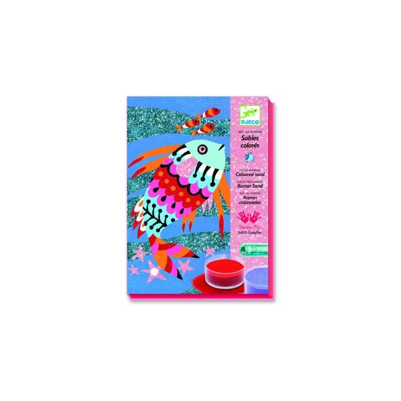 4 cuadros preciosos para realizar con arenas y purpurina de diferentes colores. Las ilustraciones son de adorables peces de colores muy vistosos y llamativos.
