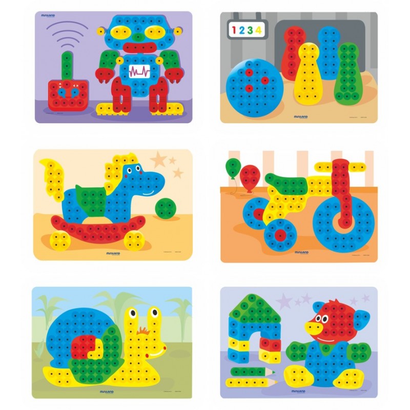 El clásico juego de pinchos que, mediante ejercicios de concentración y atención, permite el desarrollo de la coordinación viso-motora, la creatividad, la orientación espacial y la discriminación de colores.