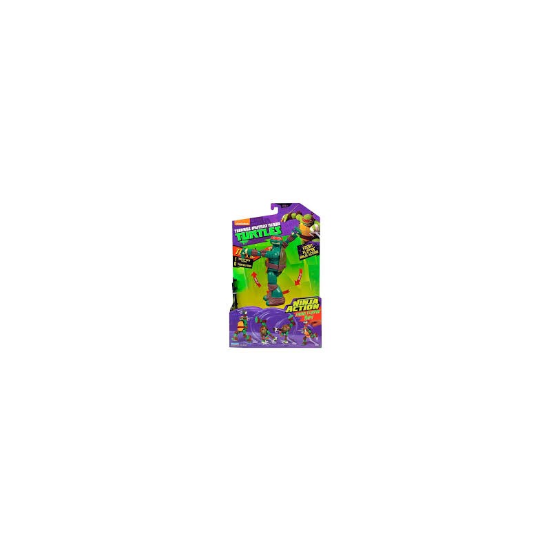 ¡Listo para la batalla! Levanta a Raph, empuja su cabeza hacia abajo y mira cómo realiza su movimiento giratorio característico "superwindin ''". Incluye 2 armas