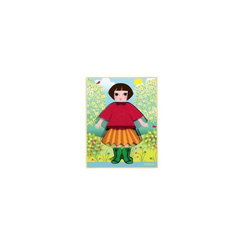 Las niñas disfrutarán de la elección de qué traje para vestir a Cleo en el día. Con vestidos abrigos tops faldas y calzado para elegir los trajes se pueden mezclar y emparejar y una plantilla de madera guiar a los niños pequeños y ayudar a poner en su lugar la ropa de fieltro. La plantilla mide 14 x 21 x 1cm y se ilustra con un fondo alegre de la primavera.