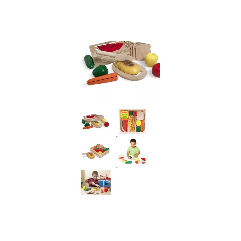 Contiene 8 alimentos diferentes, los cuales podrás dividir en trozos con la ayuda del cuchillo de madera incluido. Las pizas de frutas se mantienen unidas mediante velcro, ¡y el sonido al cortar es muy realista !Ayuda a introducir conceptos matemáticos como "el todo", "las partes" y fracciones, además d e ser un juego de imitación ideal para equipar tu cocina de juguete ...
