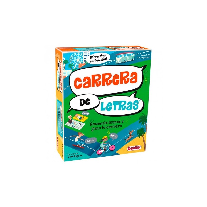Carrera de Letras es un juego de mesa para niños con el que podréis divertiros toda la familia jugando con las palabras. Tendréis la misión de decir una palabra por la que os pregunte una tarjeta al azar, ¡pero con el mayor número de letras posible! Así podréis avanzar las letras en el track para llegar a la meta. El que primero consiga sacar 8 letras ¡gana!