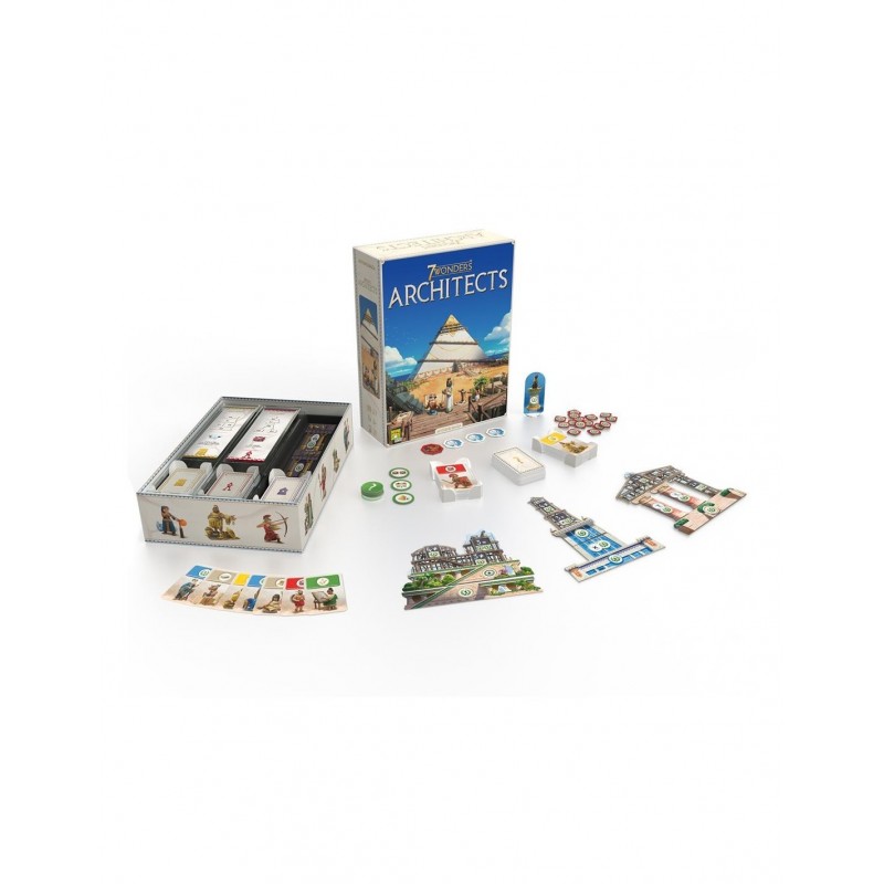 7 Wonders Architects es un juego rápido, con reglas sencillas y una gran variedad de estrategias.
