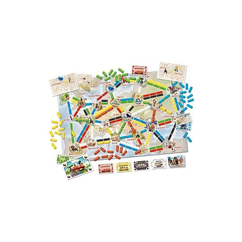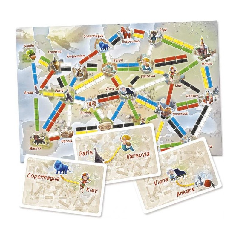 Empieza tu viaje y prepárate para vivir nuevas aventuras en tu recorrido en tren a lo largo de toda Europa. Reúne cartas de diferentes colores, úsalas para reclamar recorridos con tus trenes, y completa tus billetes de destino para alcanzar la victoria.