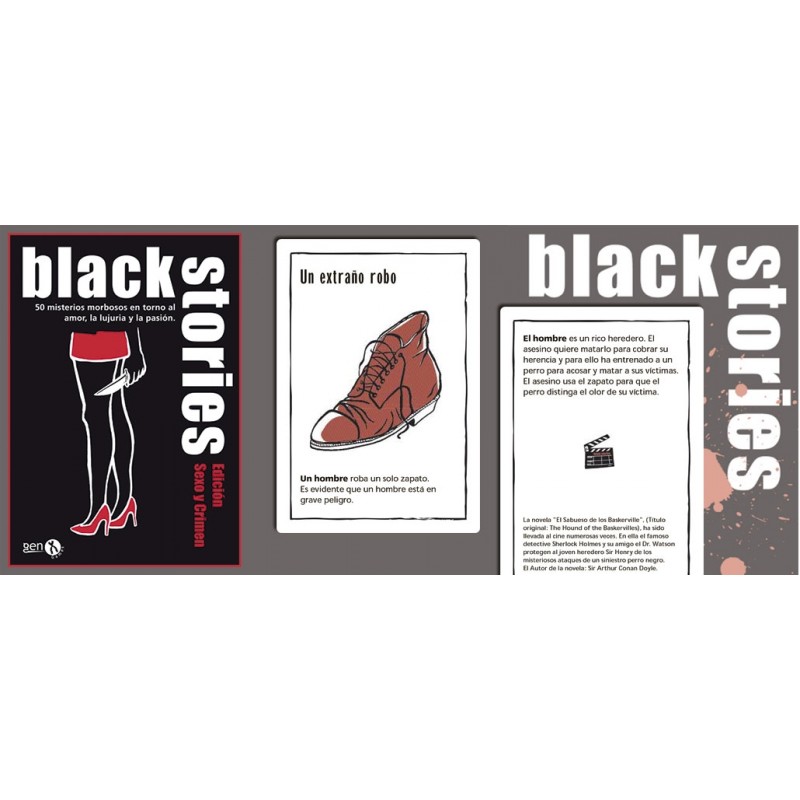 Black Stories (Historias Negras) son historias desconcertantes, morbosas, macabras, que podrían haber ocurrido como se describen, o casi. Se transmiten boca a boca entre los aficionados a esta clase de leyendas urbanas. A veces todo acaba muy deprisa: dos o tres preguntas y ya estás sobre la pista. Pero a veces, una historia aparentemente sencilla se muestra como la más difícil de descifrar.