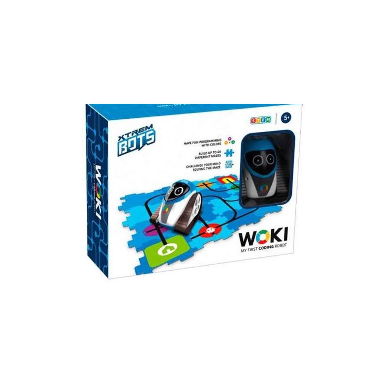 Juguete construcción para niños donde hay que construir laberintos. Usa las fichas para programar la ruta del robot y ayudar a Woki a resolver el laberinto.