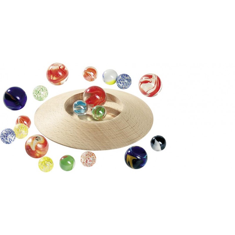 Se ha inaugurado la arena de las canicas. La meta es sacar las canicas del plato de madera con un poco de habilidad. Plato Ø= 12 cm
