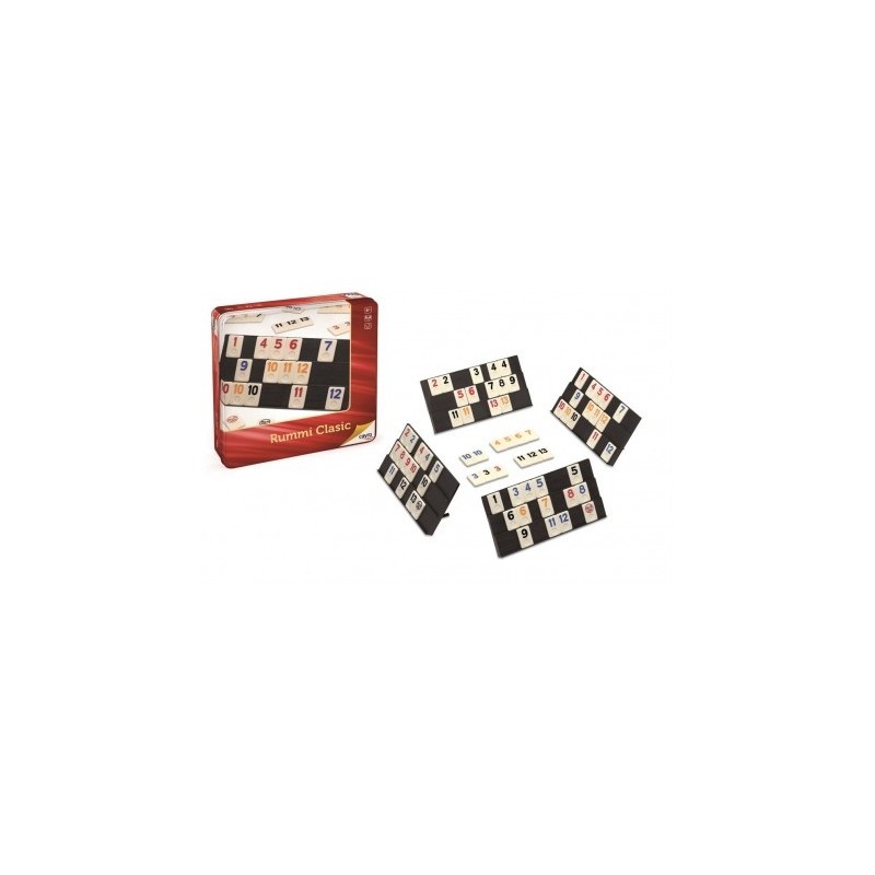 El Rummi es un juego que engancha! Tendrás que formar grupos del mismo número en distinto color o escaleras de color hasta quedarte sin fichas. El juego viene presentado en una caja de metal.