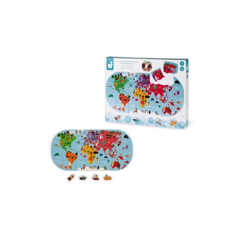 Viaja por el mundo mientras te bañas. Las piezas flotan y se puede pegar en los azulejos.