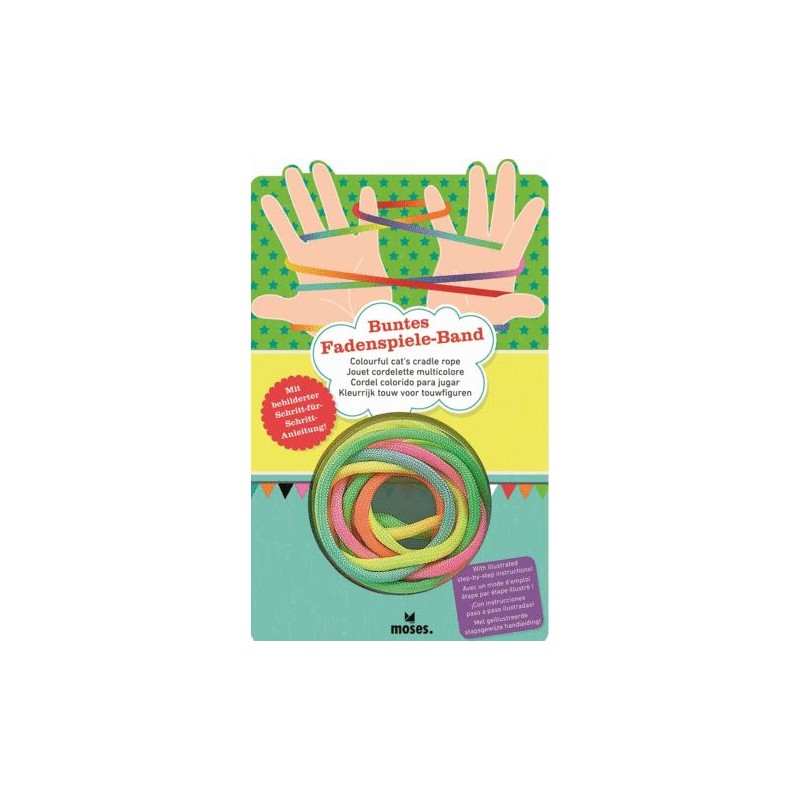 Cinta de juego de hilo multicolor. Incluye instrucciones paso a paso para las figuras. Medida:aprox.184 cm x Ø 0,5 cm