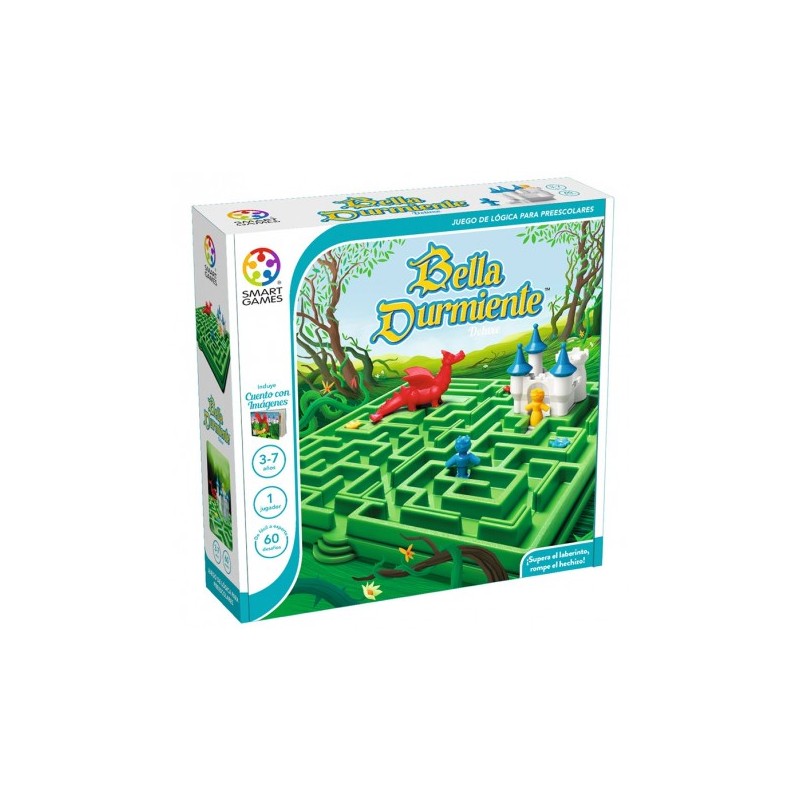 Descubre la magia del clásico cuento de hadas con este original rompecabezas. Puedes ayudar al príncipe a encontrar a la princesa, o ayudar a la princesa a escapar sola del castillo. Encuentra el camino más corto por el laberinto ¡sin perderte! ¿O prefi eres jugar con el dragón? ¡Entonces debes colocar el dragón de forma que sea imposible escapar del castillo! Incluye 60 desafíos y un cuento ilustrado.