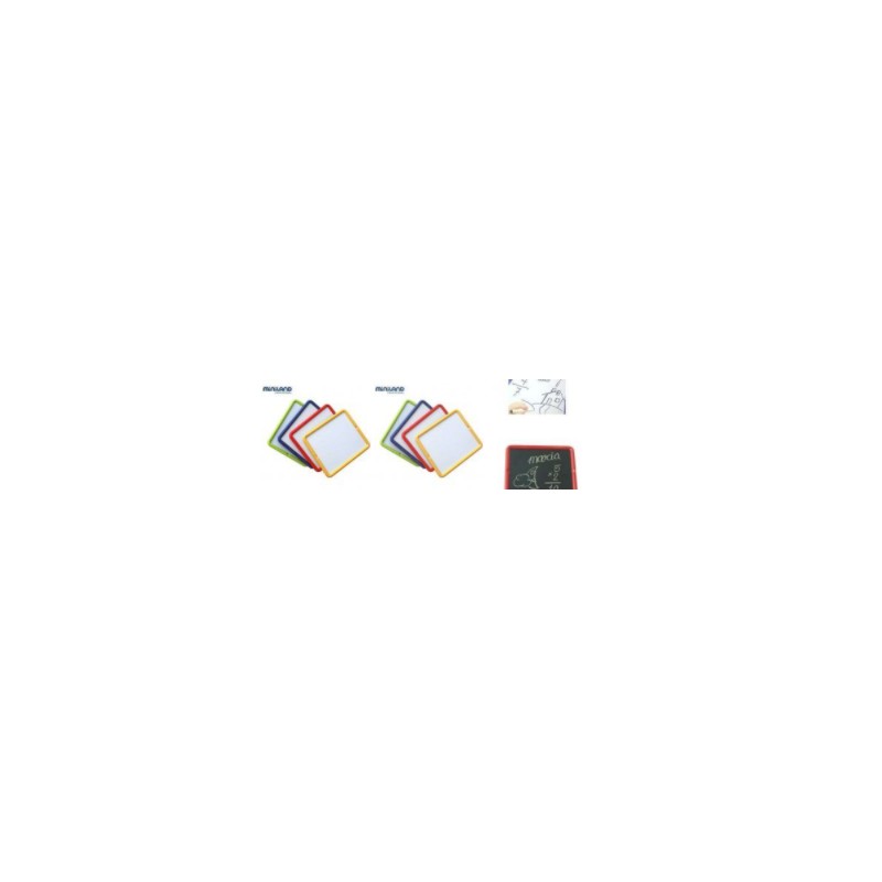 Pizarra metálica con marco de plástico de 30 x 26 cm. La cara blanca se utiliza con rotulador, la cara negra con las tizas y ambas caras pueden utilizarse con juegos magnéticos.