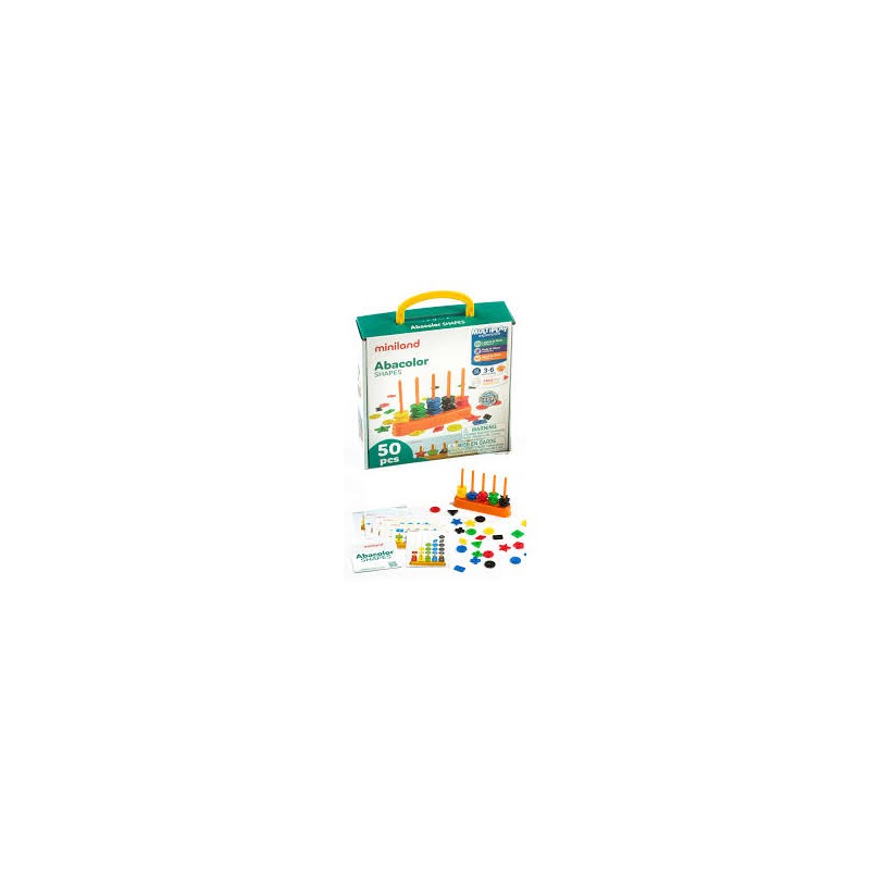 Ábaco formado por 5 columnas y con un completo surtido de formas y colores. Acompañado de interesantes actividades para ejercitar la identificación y el aprendizaje en el niño.