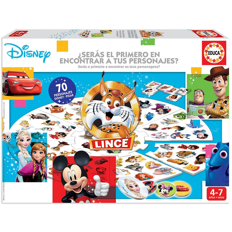 Nuevo juego del Lince con los personajes de las películas y series de Disney y Pixar: Coco, Up, Ralph, Rapunzel, Toy story, Cars 2 y Brave. Sé el primero en encontrar las imágenes en el tablero, reúne como tantas fichas como sea posible y gana. Contenido: tablero de juego, 70 fichas, 12 tarjetas de color, una caja e instrucciones...