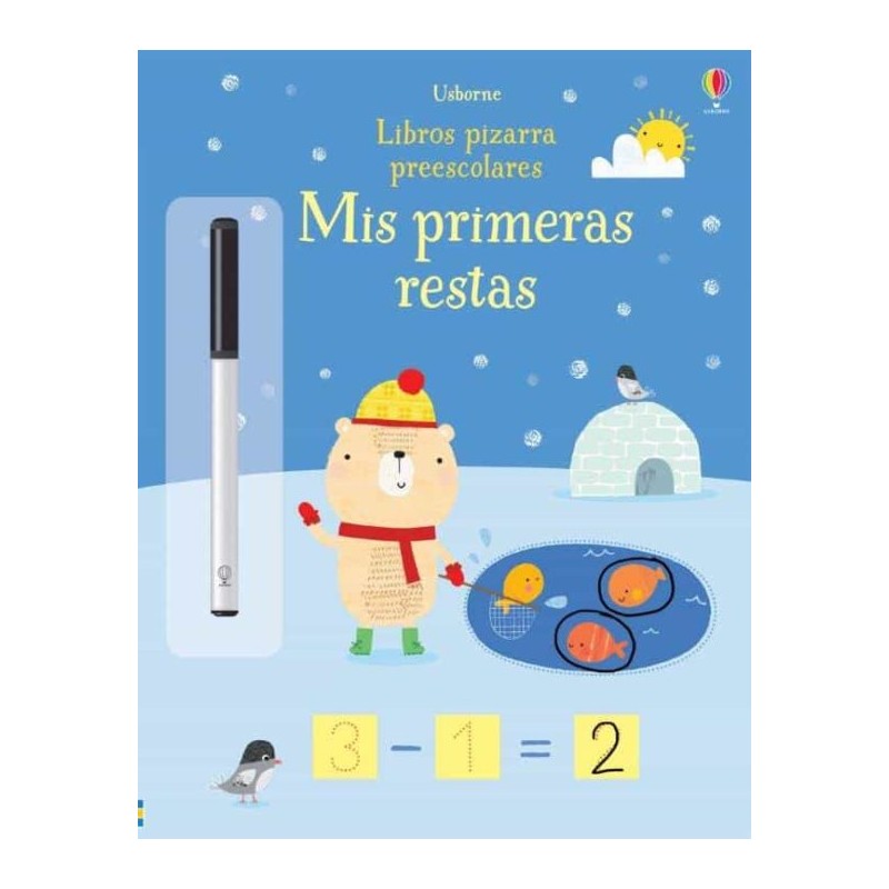 Un libro pizarra con un montón de actividades para aprender a hacer restas sencillas de una manera original y divertida. En cada página hay alegres dibujos de animales que ayudarán a los niños a contar, comparar cantidades y hacer sus primeras restas. Gracias a sus resistentes páginas plastificadas y al rotulador especial, los niños podrán borrar y volver a empezar .