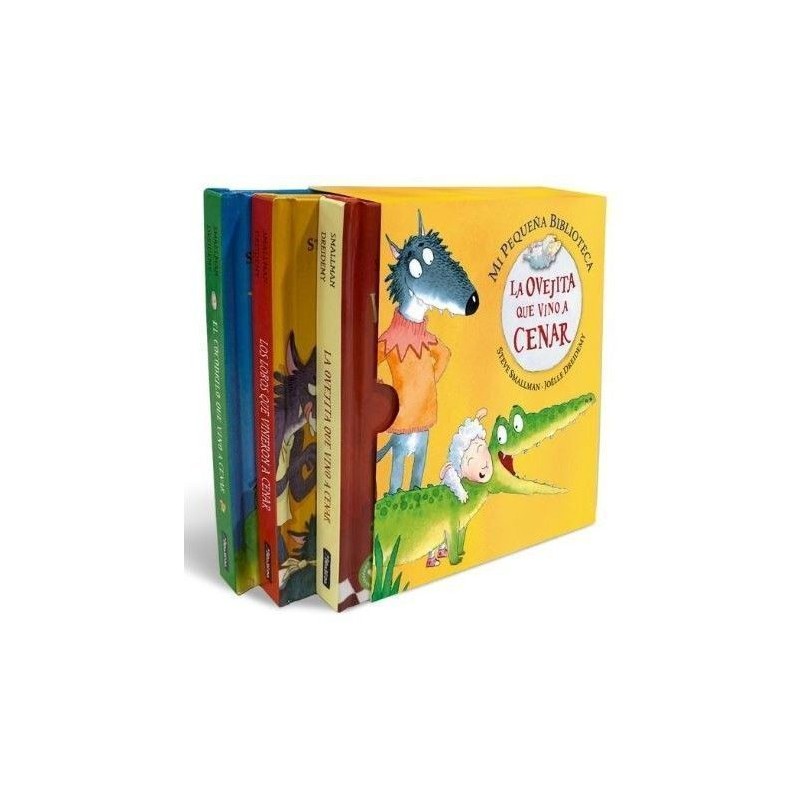 Mi pequeña biblioteca de La ovejita que vino a cenar es un precioso estuche con los tres primeros libros de cartón de esta divertida saga superventas.