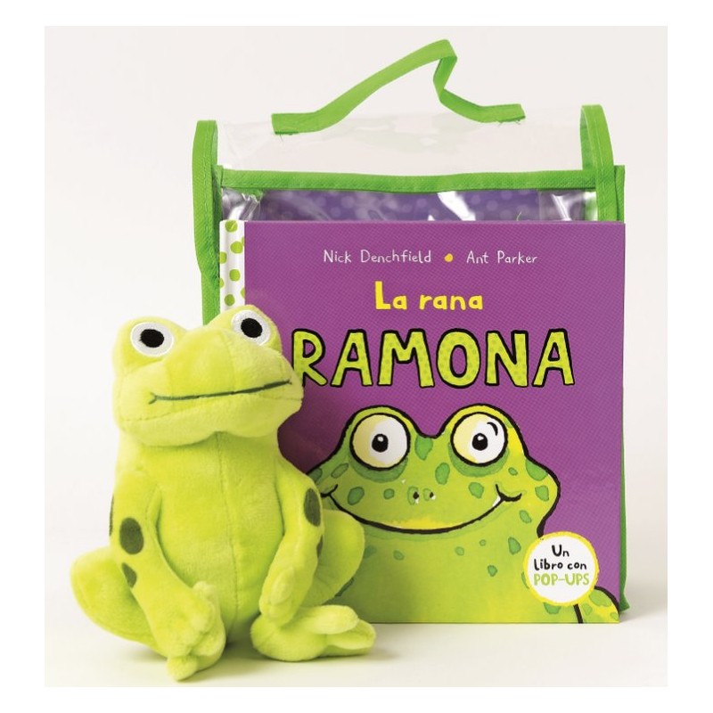 Este pack contiene un divertido libro con pop-ups y un peluche de la rana Ramona, una de las amigas del pollo Pepe. Apto para niños de 2 años.