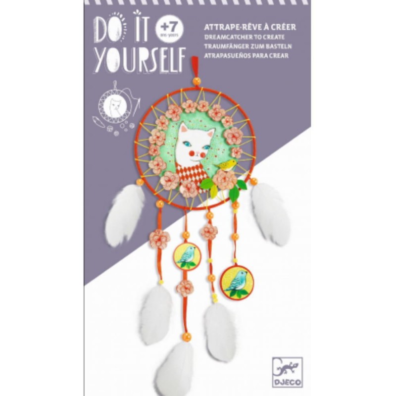 Atrapasueños para crear Arlecat forma parte de colección Do it yourself de Djeco , colección creada con el fin de proporcionar a los niños divertidas y originales manualidades para explotar su creatividad.Kit para crear un bonito atrapasueños de forma fácil y sencilla, sigue paso a paso las instrucciones y con la aguja de bordado podrás crear este fabuloso atrapasueño. + de 7 años.