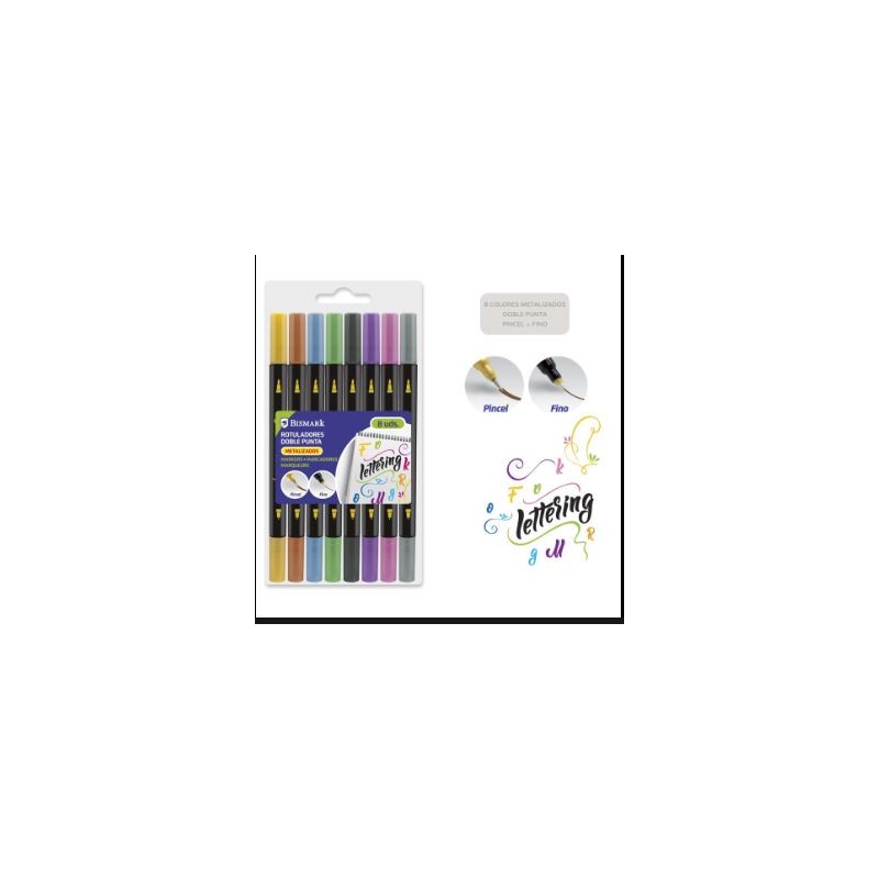 SET 8 ROTULADORES DOBLE PUNTA METALIZADO LETTERING