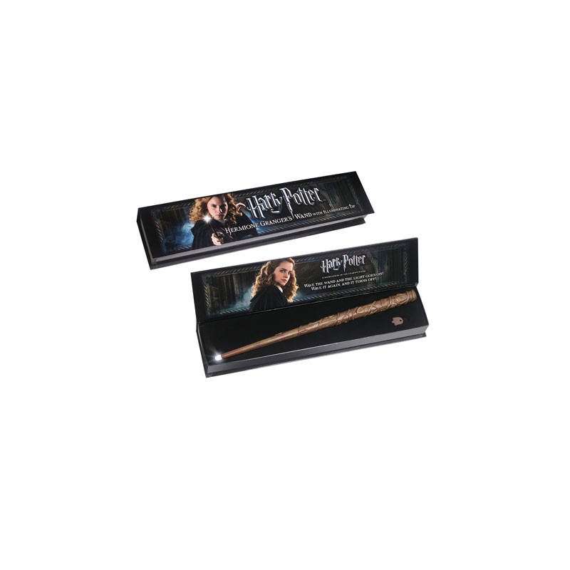 Esta versión luminosa de la varita mágica de Harry Potter (de la cual es posible ajustar la intensidad) mide 35 cm. y es vendida con su caja. Las 2 baterías AAA no están incluidas.