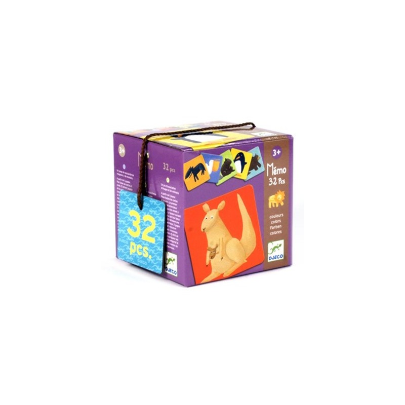 Un juego de asociación de imágenes y de memoria. . Pon todas las cartas al revés. El primer jugador da la vuelta a dos cartas y luego las vuelve a colocar al revés. El jugador siguiente da también la vuelta a dos cartas y las vuelve a poner al revés. Si encuentra una pareja de animales gana la pareja y vuelve a jugar dando de nuevo la vuelta a otras dos cartas y así sucesivamente. Gana aquél que se haya llevado mayor número de parejas de animales. Contiene 32 piezas edad recomendada más de 3 años.
