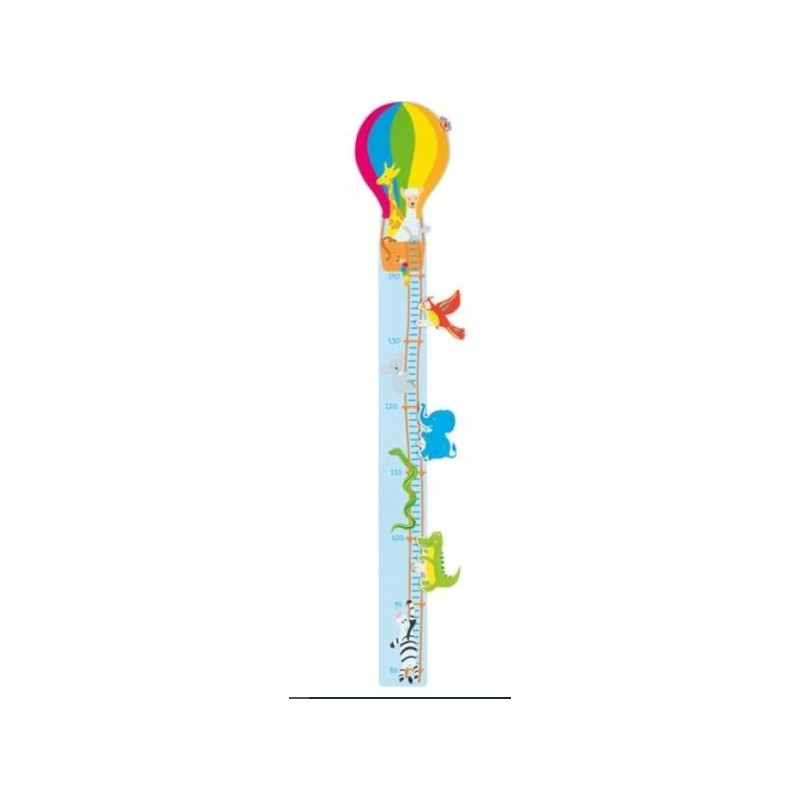 Todos los animales a bordo de este colorido globo aerostático mientras surcamos los cielos. ¿A qué altura? Bueno, eso se puede saber fácilmente con la ayuda del medidor. Nuestro medidor infantil de madera con un encantador globo aerostático no sólo es una forma práctica de controlar el crecimiento de su hijo, sino también una bonita decoración para el cuarto de los niños. UPC: 4013594606639