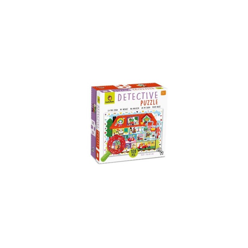 Monta el puzle y diviértete buscando con la lupa de madera un montón de objetos escondidos en la casa. La imagen de este puzle se ha diseñado específicamente para desarrollar la capacidad de atención y de observación y es apta para grandes y pequeños.