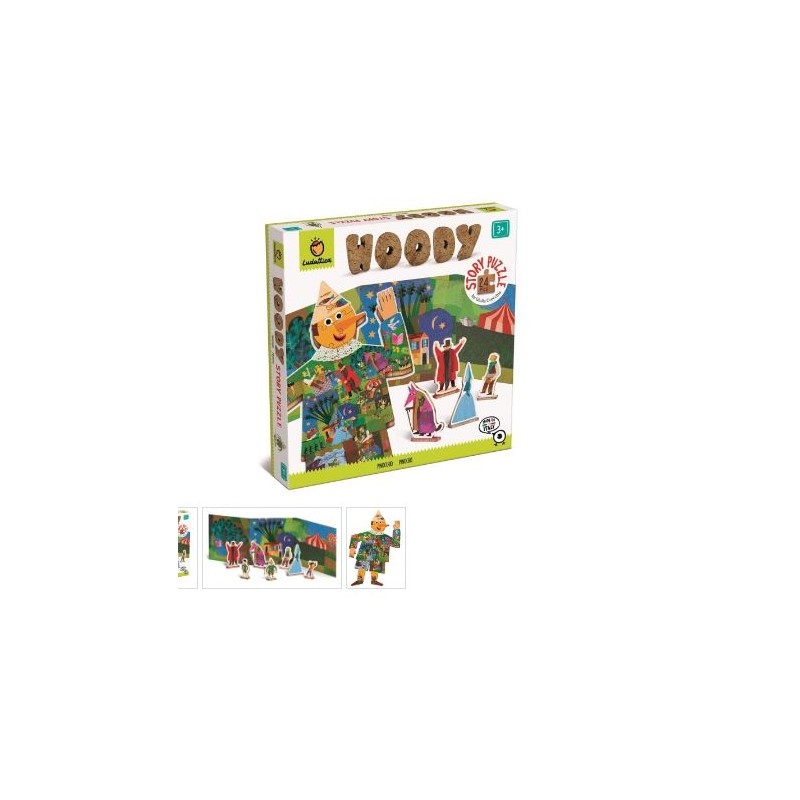 l cuento de Pinocho toma forma montando, pieza por pieza, el rompecabezas de madera con formas y jugando con los personajes de madera de la escena ilustrada. Un rompecabezas de madera con diseño en forma de la Pinocho y piezas con formas de los personajes. Las piezas de los personajes se pueden colocar en sus respectivas bases y representar el cuenta con el escenario incluido. También se puede contar el cuento siguiendo las ilustraciones del puzzle. El juego fomenta la lógica, la visio-percepción y la motricidad fina. | |