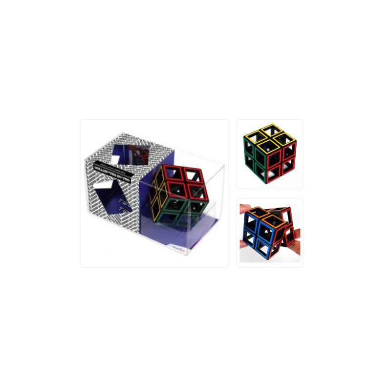 Mefferts sigue aumentando su serie de cubos Hollow con este espectacular cubo 2x2. Además de tener un aspecto increíble y toda la calidad de Mefferts su giro es muy bueno para ser un cubo sin núcleo. Tiene un mecanismo de raíles mediante el cual se deslizan las piezas, además este 2x2 tiene un sistema de click que indica cuando acaba el giro y hace que quede el cubo perfecto para iniciar un nuevo giro. El Mefferts Hollow 2x2 se puede resolver muy cómodamente y con algo de velocidad gracias a que debido a su sistema de giro no sufre bloqueos, su tamaño es considerablemente más grande que el de un cubo 2x2 tradicional ya que mide 60 mm de lado. Viene presentado en una caja muy elegante que lo hace muy especial para regalo y para coleccionistas.